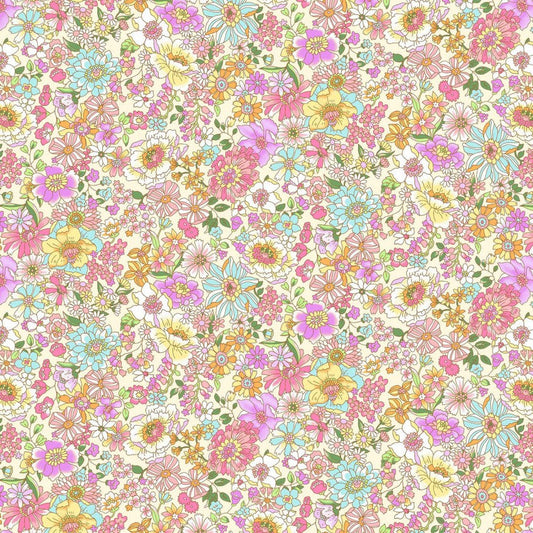 Retro Flowers in Pastel | Broadcloth | Remnant 6"