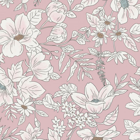 Pink Flowers | Cotton Lawn | Remnant 42"