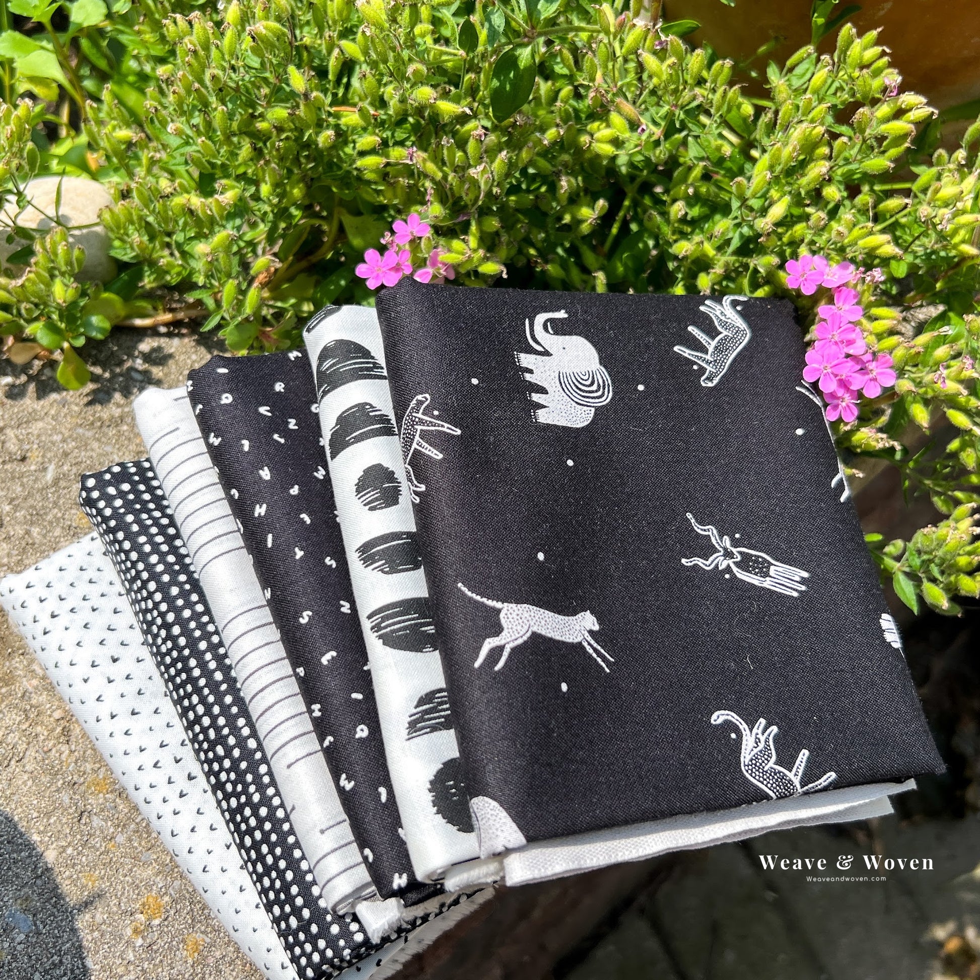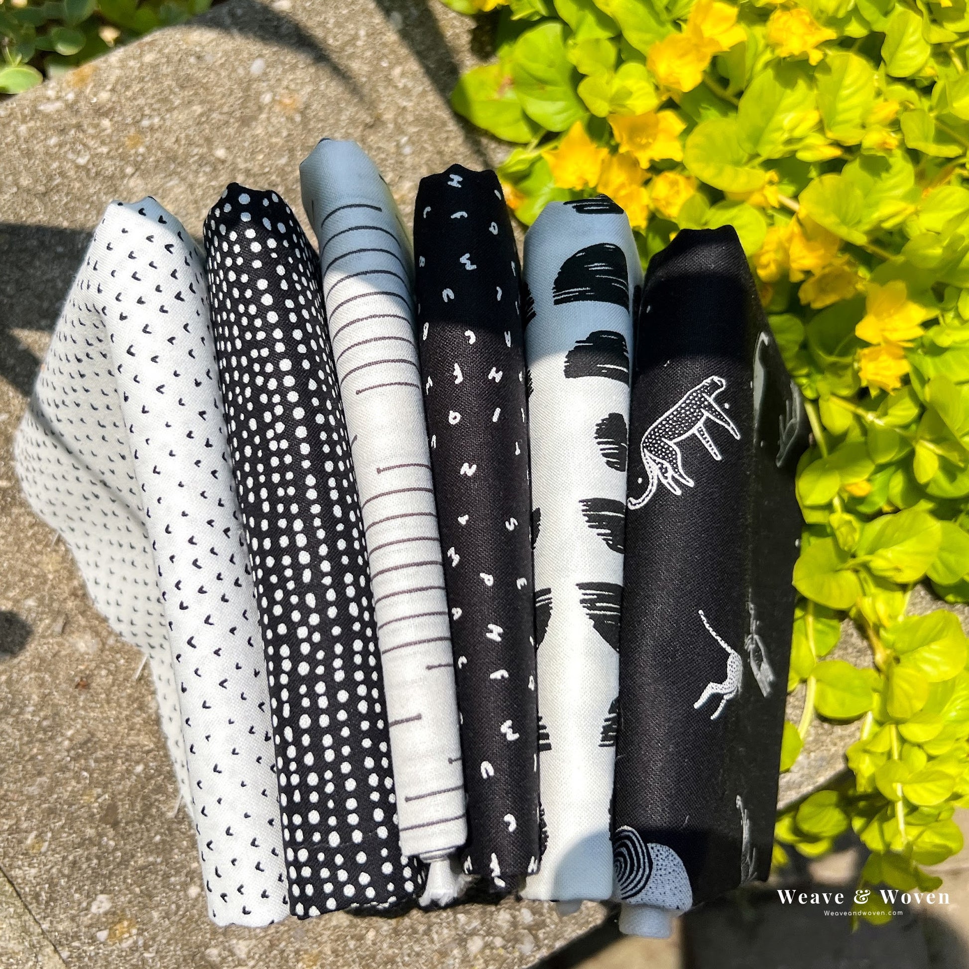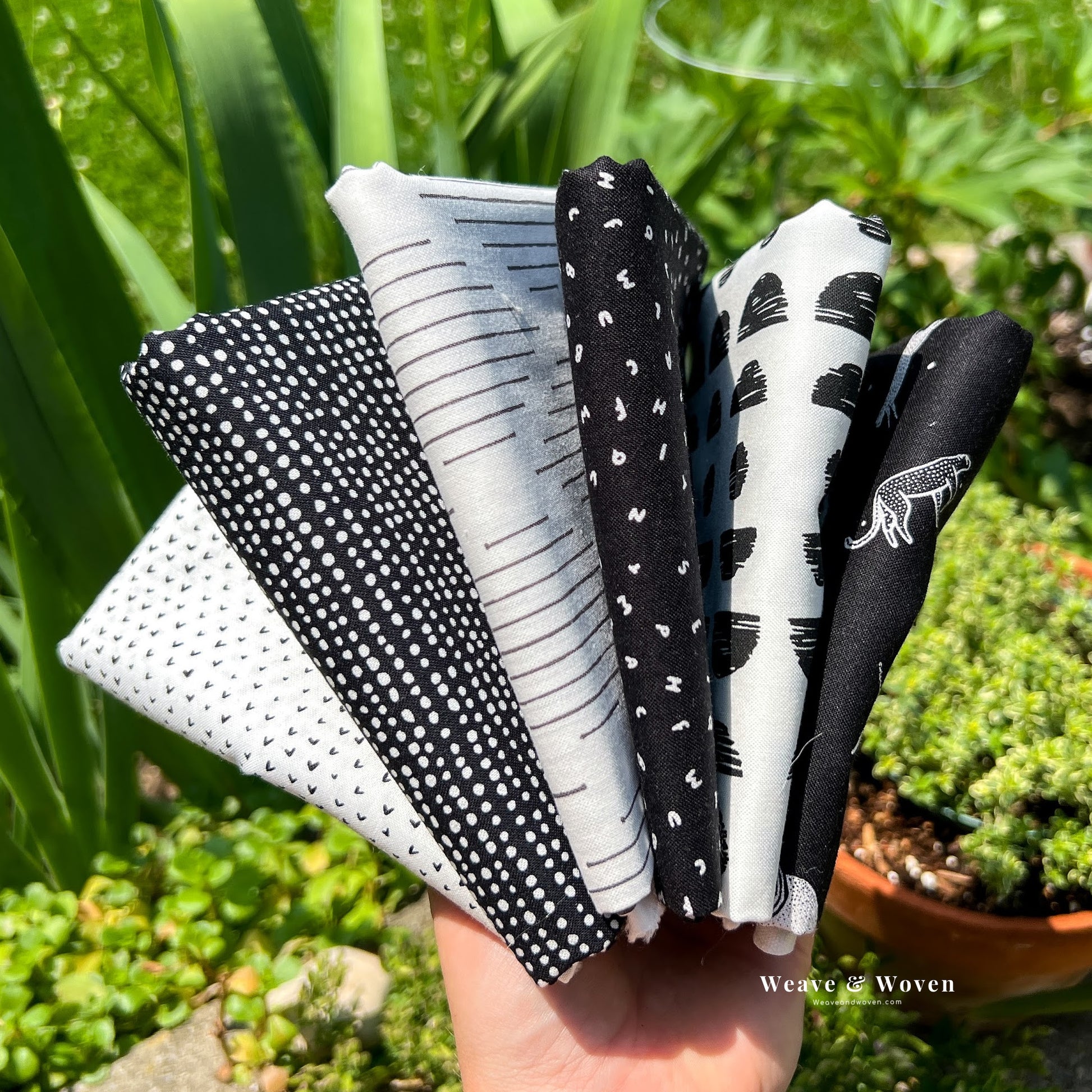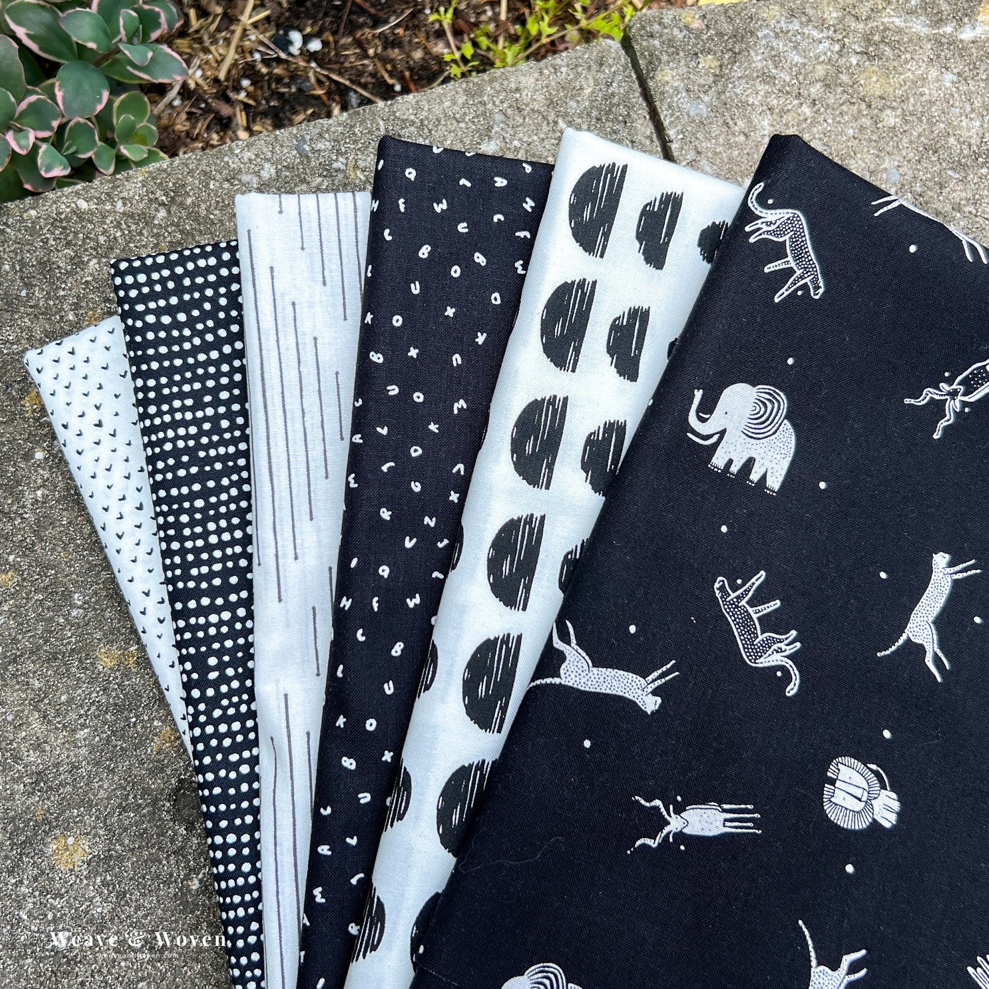 You will receive one of each print shown for a total of 6 Fat Quarters Custom Curated by Weave & Woven.